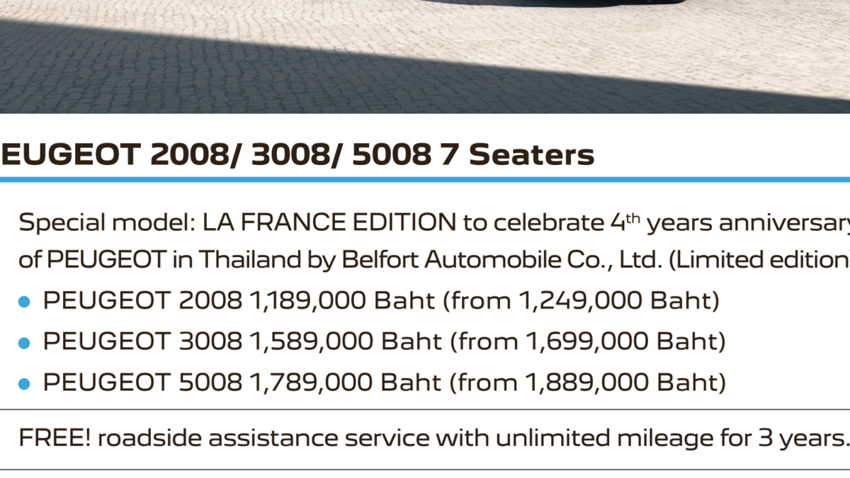 Special model: LA FRANCE EDITION to celebrate Lith years anniversary of PEUGEOT in Thailand by Belfort Automobile Co., Ltd. (Limited edition)