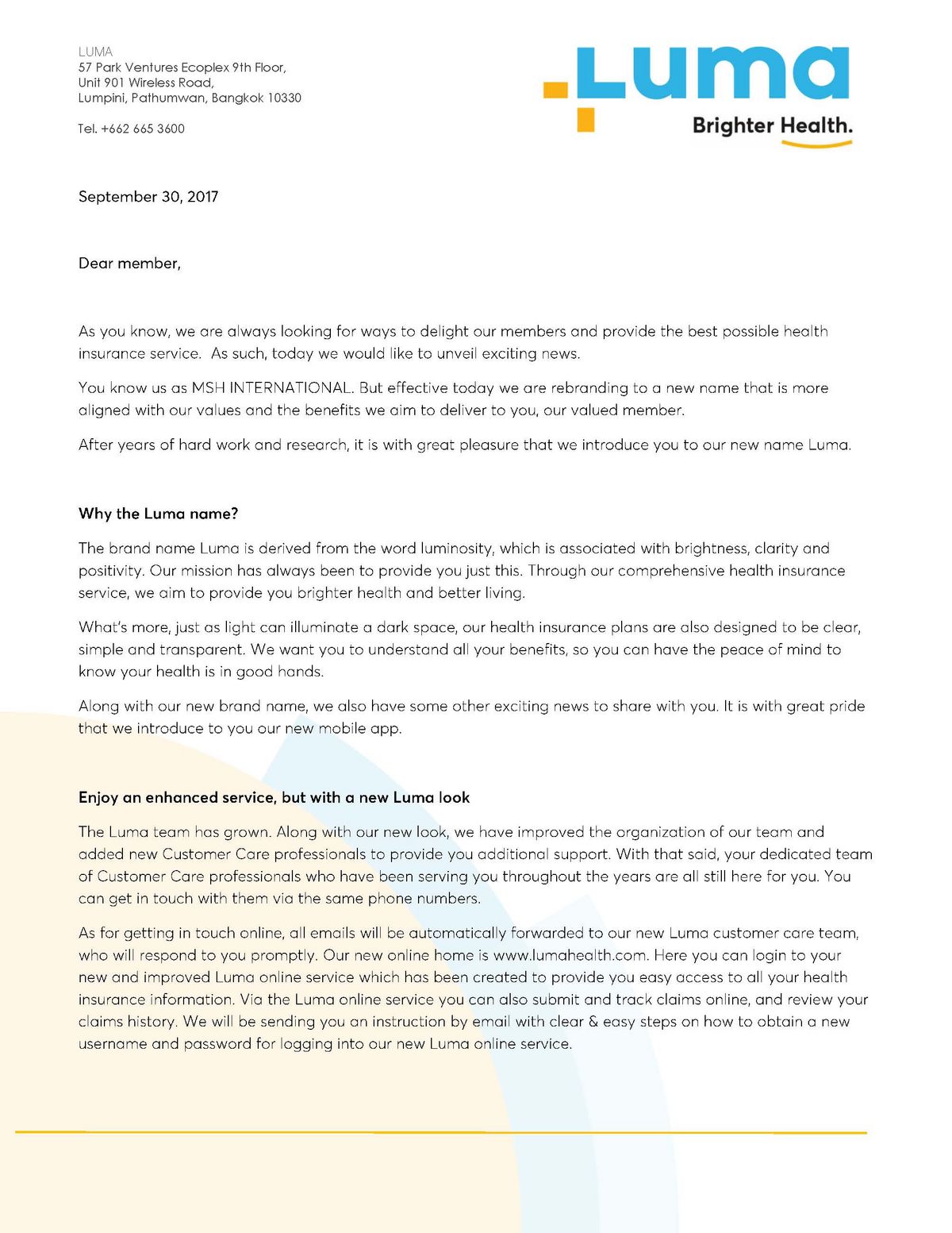 MSH International (Thailand) Limited is now Luma Care Company Limited!