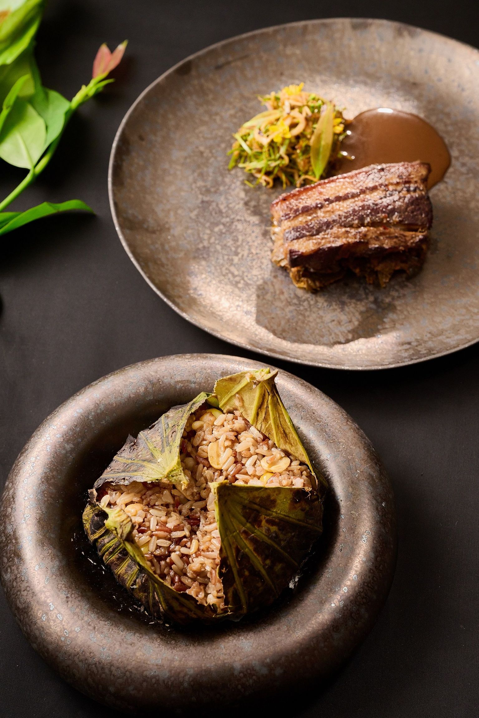 This course come along with Khao Klong Hor Bai Bau, baked Jasmine brown rice with grains served in the lotus leaf. Ending the culinary treat is Lychee Kulab, white chocolate with lychee flavour staff with rose-vanilla cream and lychee jelly, served with yuzu gel.