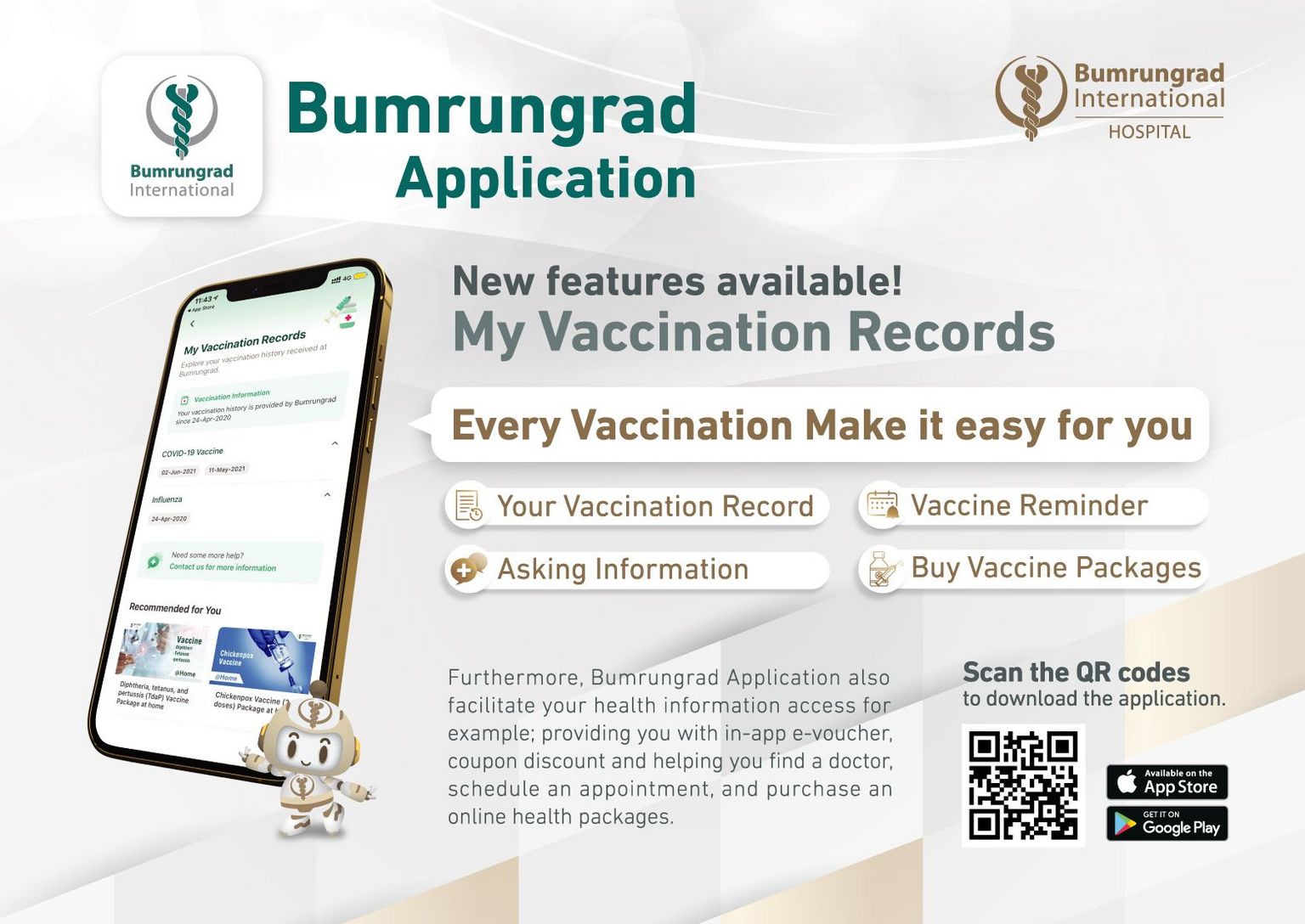 Bumrungrad App launches new feature ‘My Vaccination Records’ to make your every vaccination easy for you.