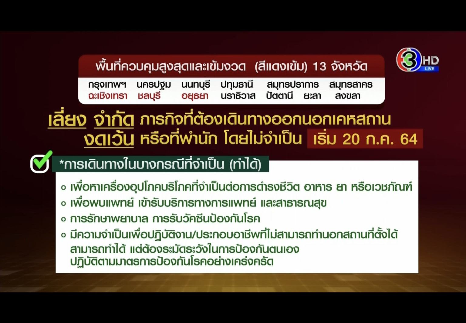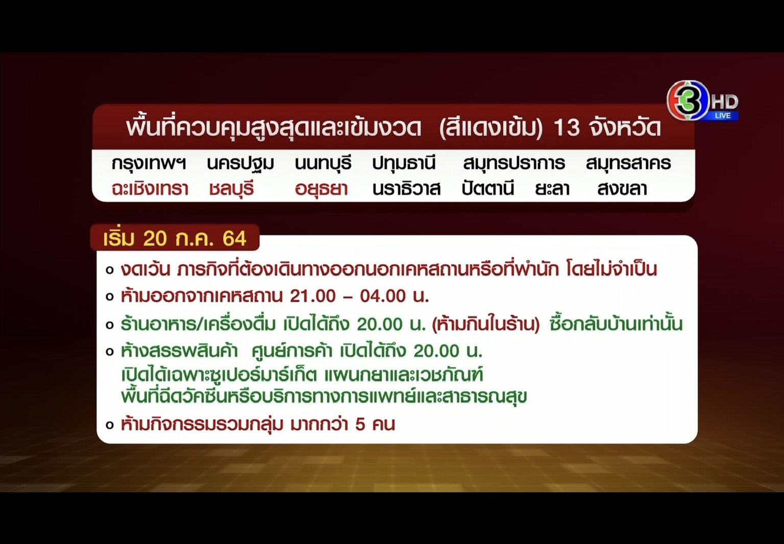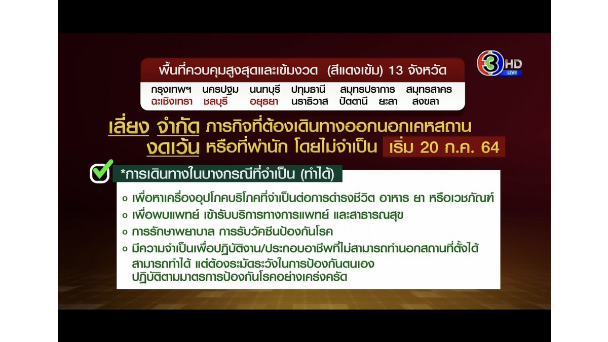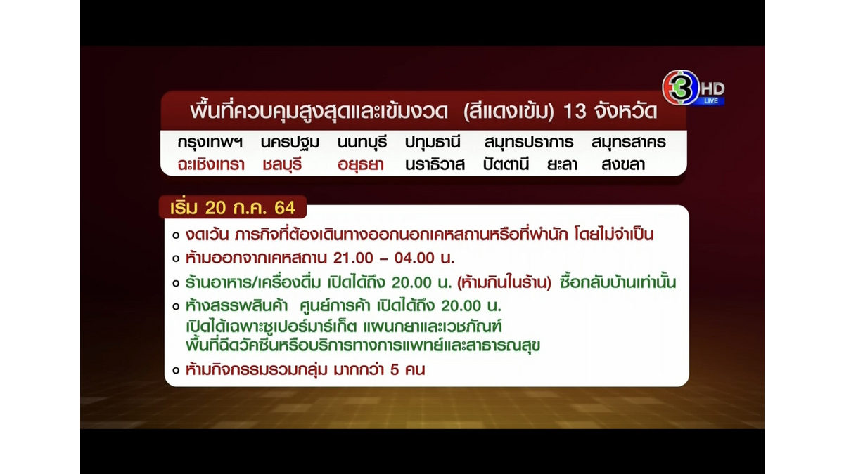 3 provinces added in to the list of dark red zones: Chachoengsao, Chonburi, Ayutthata have been added in the dark red zones with 10 other provinces: Bangkok Nakornpathom, Nonthaburi, Pathumthani, Samutprakarn, Samutsakorn, Narathiwat, Pattani, Yala, Songkhla