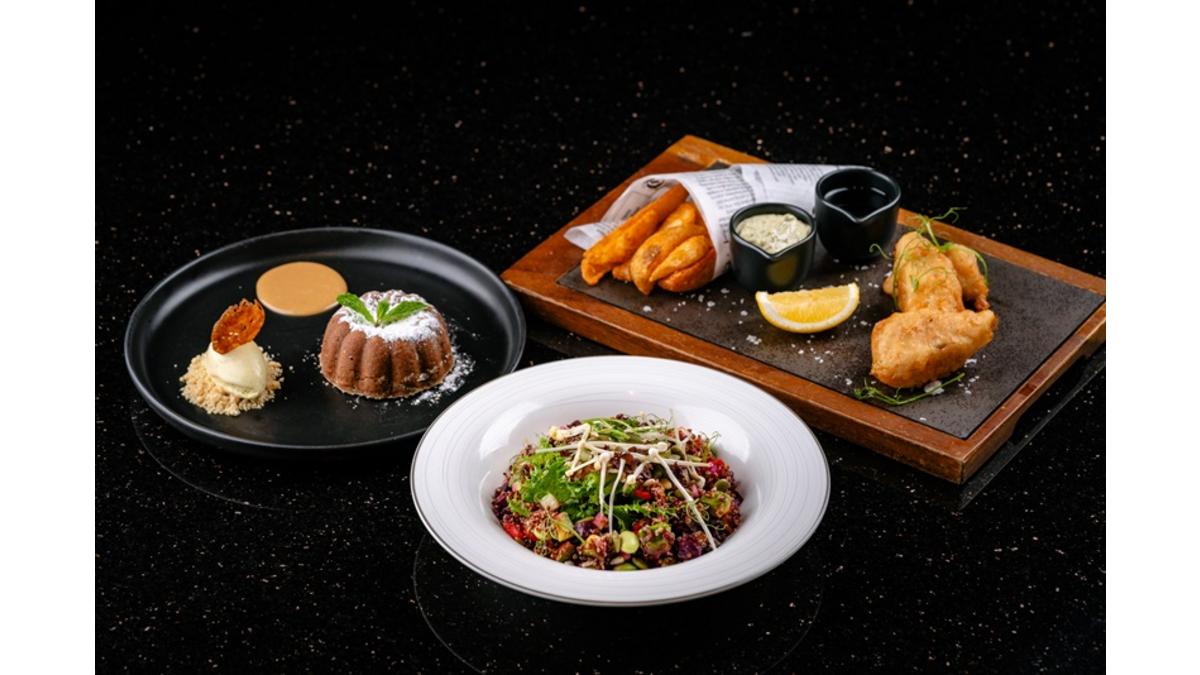 Kick off your meal with signature appetizer, Caesar salad, Onion soup or Superfood salad, followed by your favorite meat from Traditional Fish & Chips, Half Grilled Baby Chicken to Beef Tenderloin. For all sweet lovers, selection of ice cream and sorbets, Valrhona Chocolate Fondant or Mascarpone Cheesecake is highly recommended.