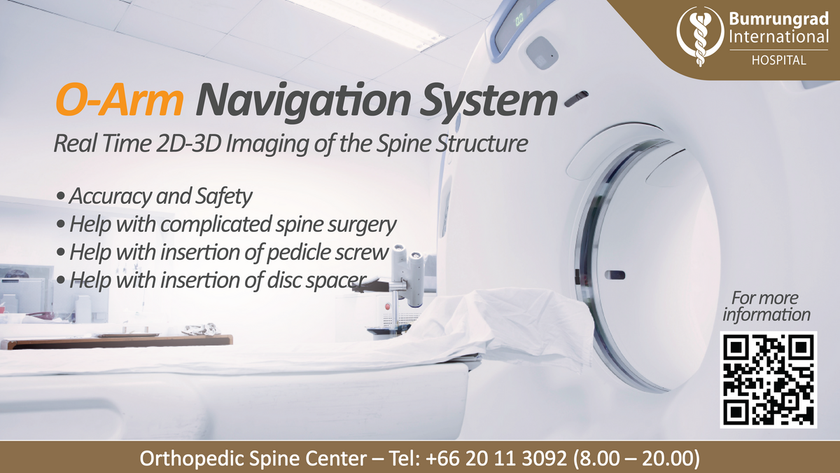 Safety & accuracy has always been the number one concern of Bumrungrad Hospital. Spine surgery often requires high precision and experience doctors. Recently, we have introduced the O-Arm Navigation System, a computerized 3D navigation tool that scans the spine during surgery.