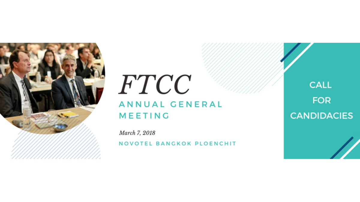 The Franco-Thai Chamber of Commerce cordially invites you to join our Annual General Meeting. This event is the perfect occasion for you to learn more about our activities, get more insights on what we do and last but not least, it gives you the opportunity to truly contribute to the success of the Chamber by electing your Counsellors. As a reminder, we must emphasize on the fact that only FTCC Members can participate in the Annual Ordinary General Meeting (one vote per company). However, the AGM will be followed by a Cocktail Party from 8 to 10 pm open to everyone and we would love to see all of you there.