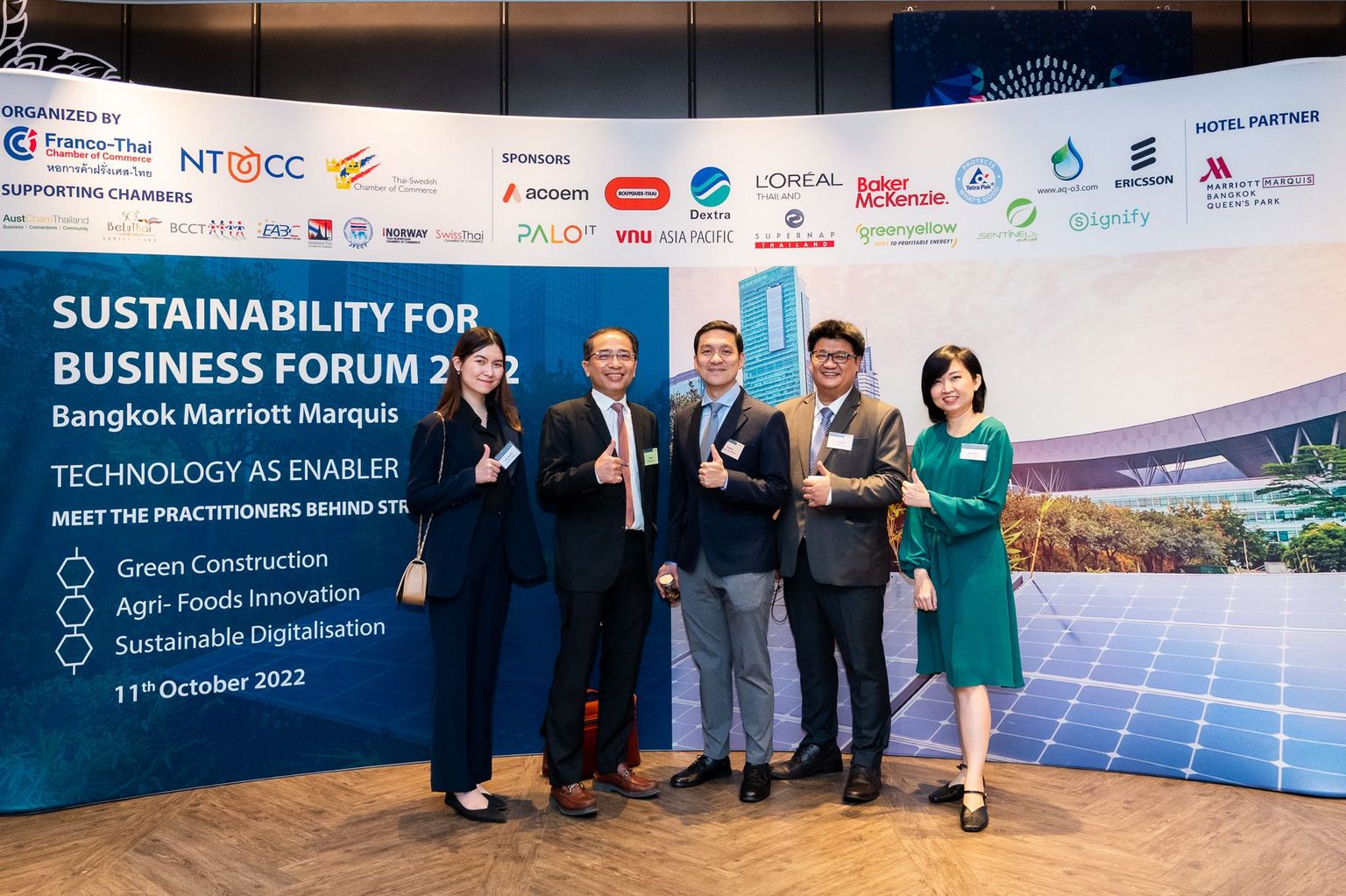 The 5th Edition of the Sustainability for Business Forum (SBF22) was successfully organized by the Multi-Chamber of Commerces, Franco-Thai Chamber of Commerce (FTCC), Netherlands-Thai Chamber of Commerce (NTCC) and Thai-Swedish Chamber of Commerce, at Bangkok Marriott Marquis Queen’s Park on Tuesday 11th October 2022.