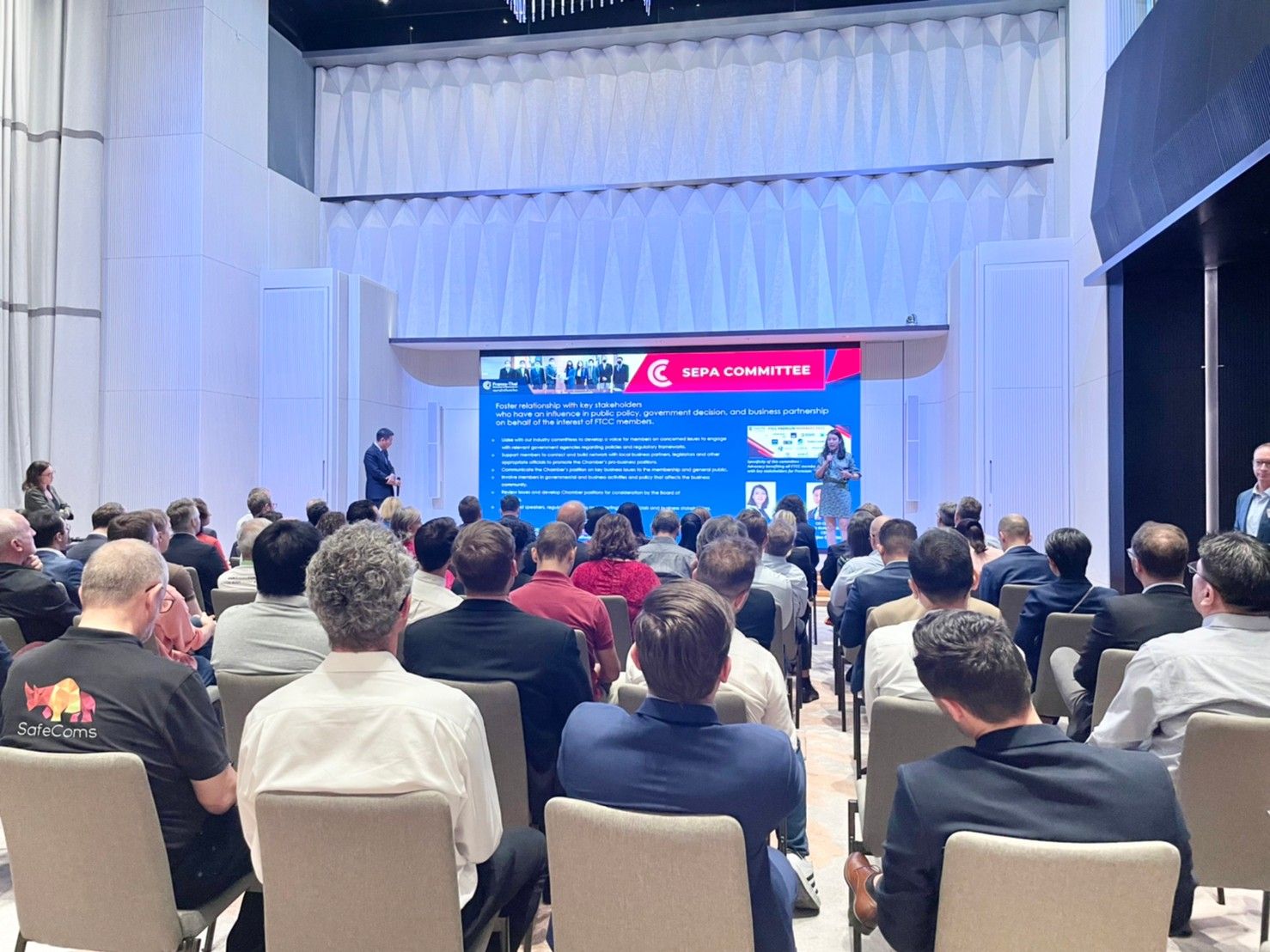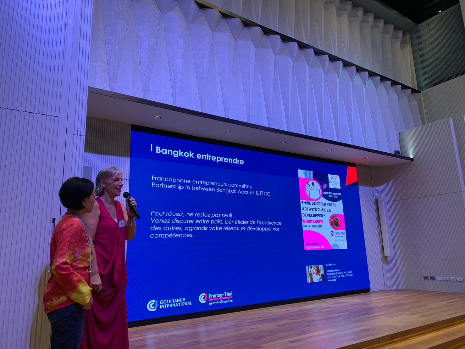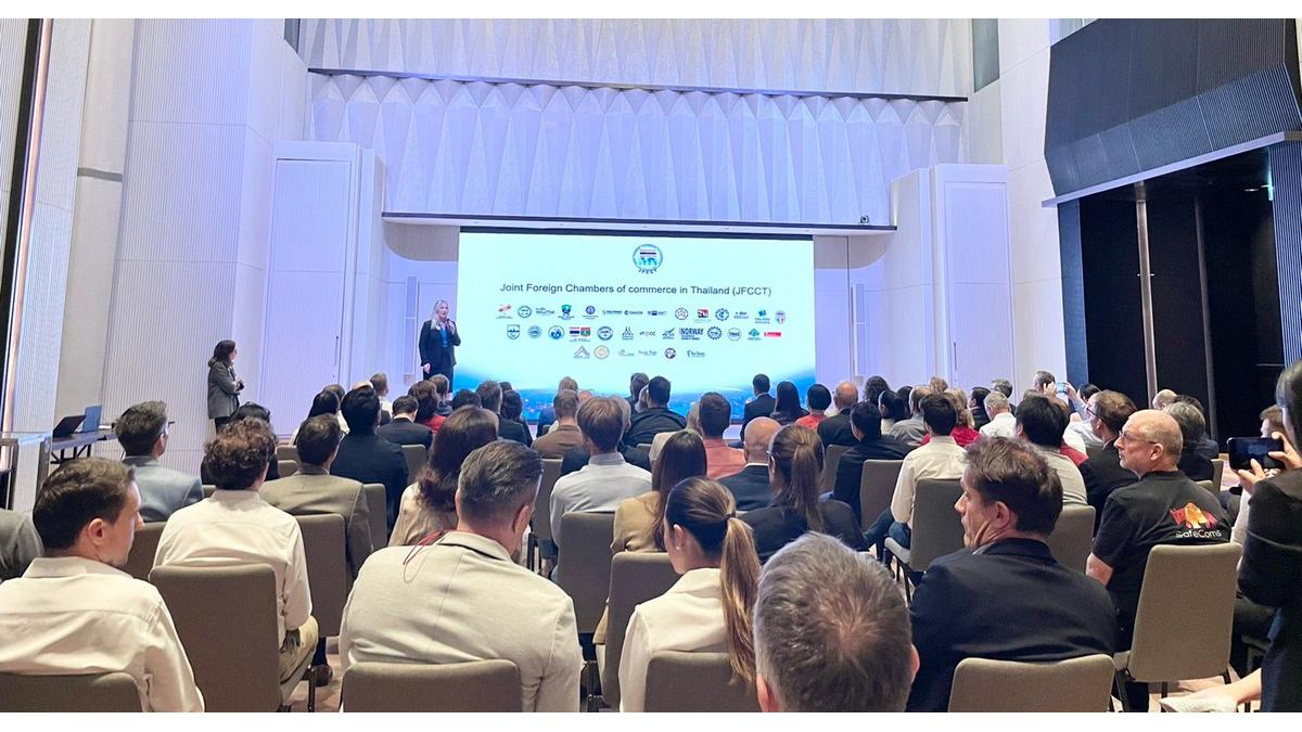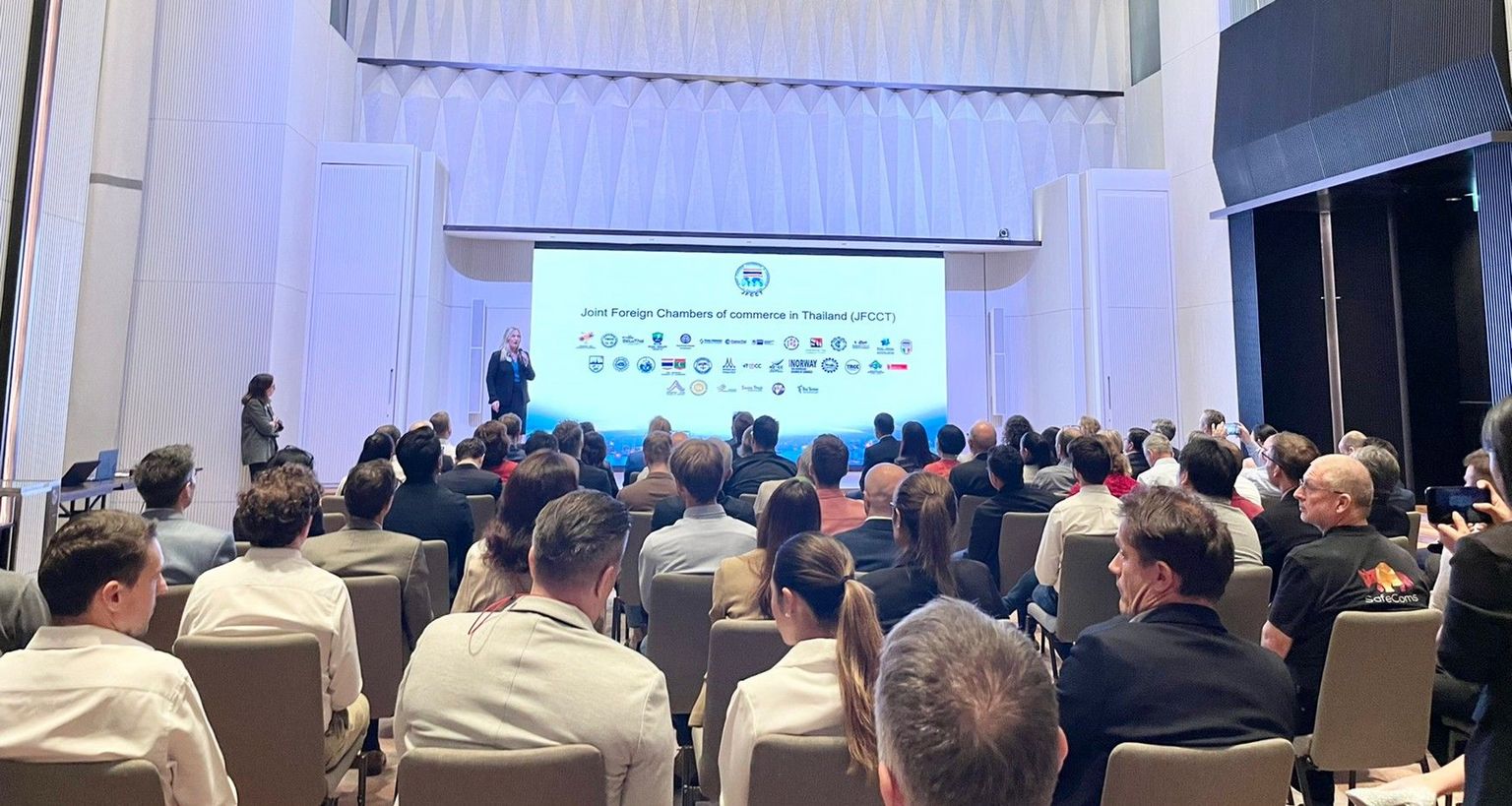 Moreover, it was a great honor to welcome Joint Foreign Chambers of Commerce in ThailandVibeke Lyssand Leirvag, chairwoman of JFFCT, and Supareak Charlie Chomchan, Chairman of JFCCT SME Committee, on the stage to present and shared information about the JFCCT working group.