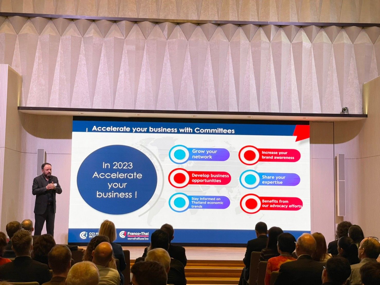 The opening remark was delivered by FTCC President, Patrice PISCHEDDA. All representatives of working sectoral committees gathered to share their targets and roadmap for 2023. #SEPA#SmartLivingDigitalCities#HRstrategy#SMEsEntrepreneurs#FoodBeverage#SustainabilityCSR#AgriAgro#EAC#BangkokEntreprendre