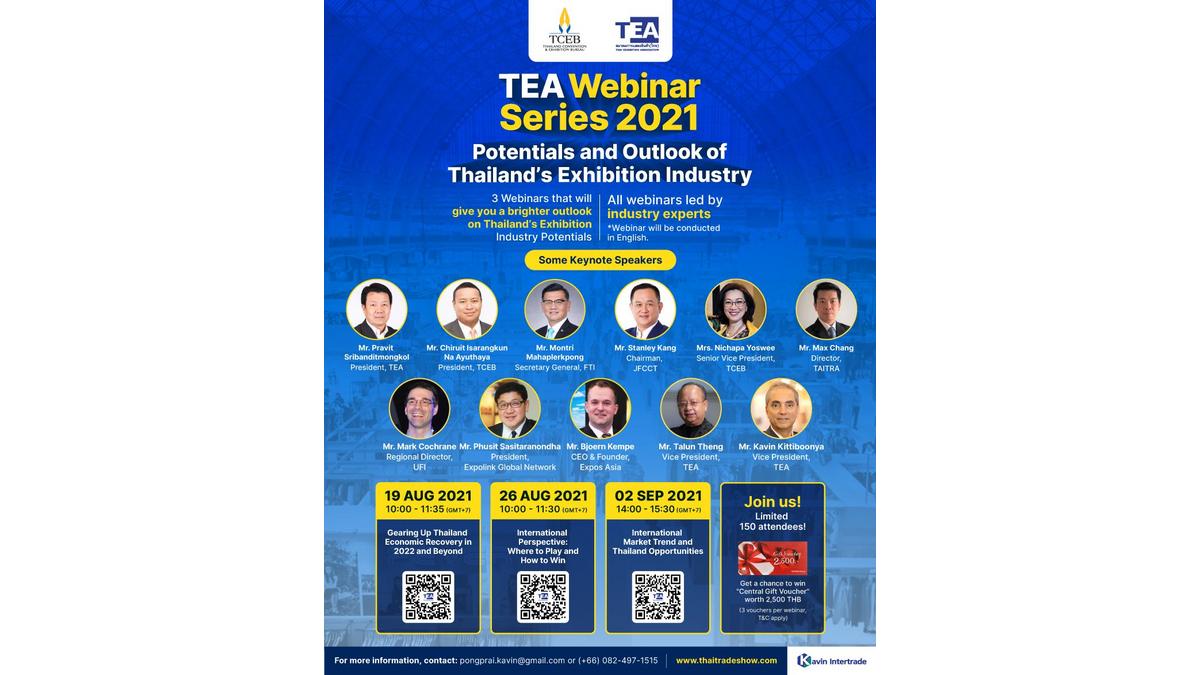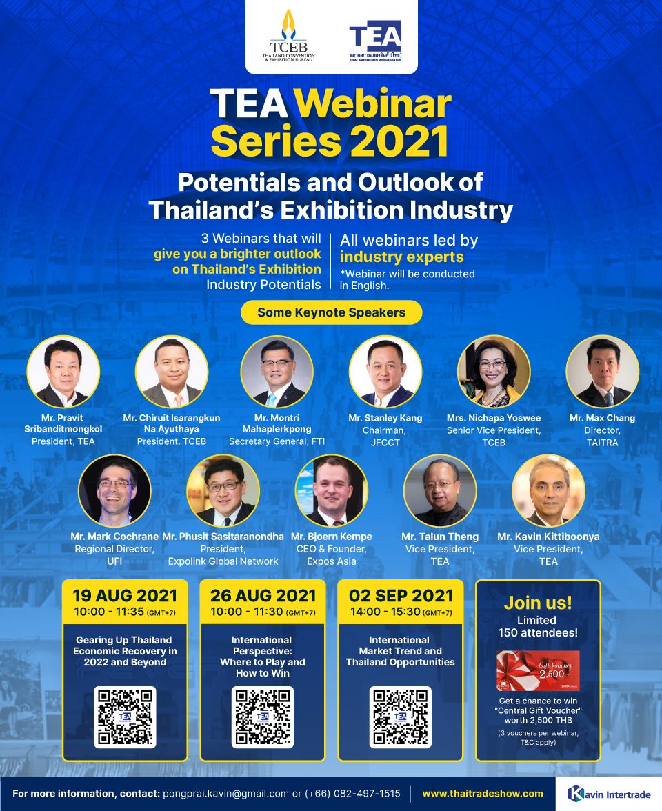 You are invited to join TEA Webinar #1 of 3 series! Top-notch experts, captivating topics, very insightful about Thailand’s exhibition industry and its potentials