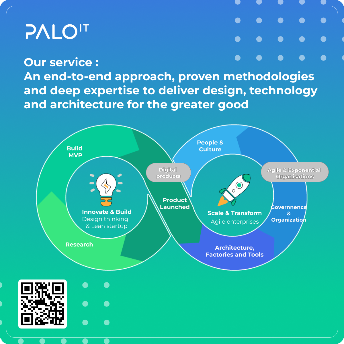 PALO IT is a global innovation consultancy and Agile software development company. At PALO IT, we are not just delivering technology, we believe in tech as a force for good.