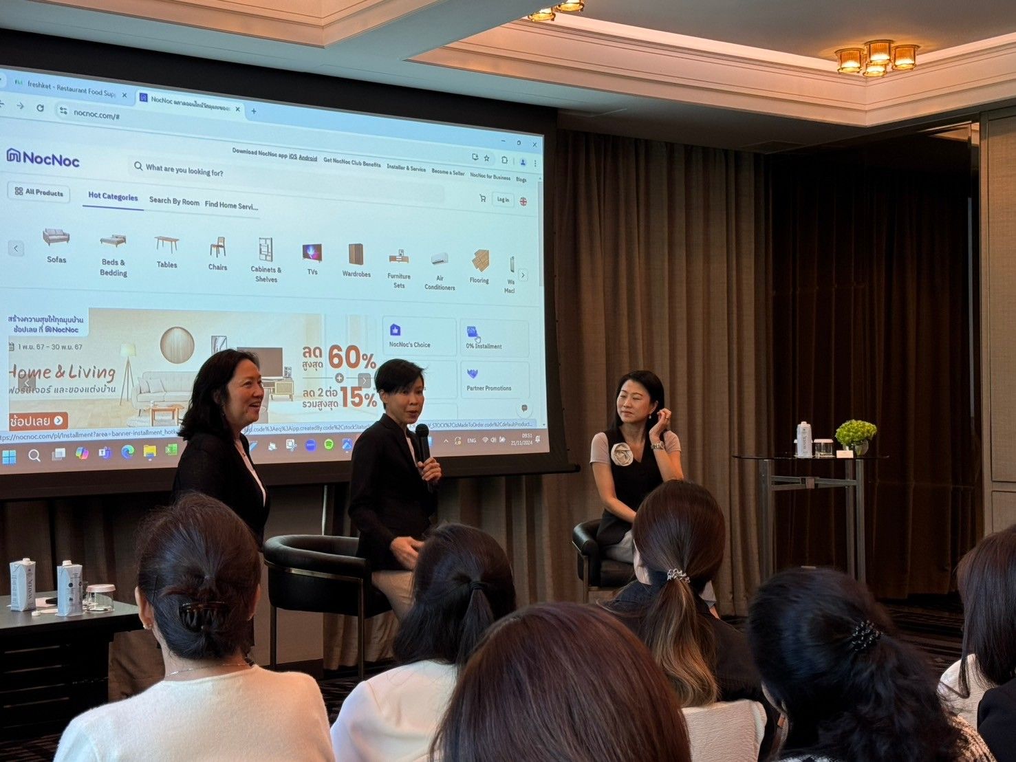 ? A thought-provoking fireside chat on "Breaking Barriers: The Challenges Women Face in the Tech Industry" featuring: Nichapat Ark, Director for Openspace Ventures, Ponglada Paniangwet, Co-Founder & CEO at FreshKet and Chonlak Mahasuvirachai, Co-Founder & CEO of NocNoc