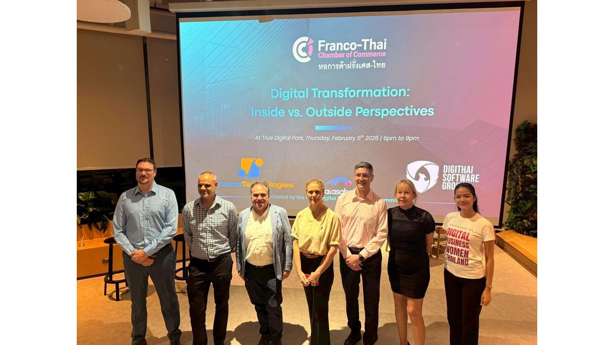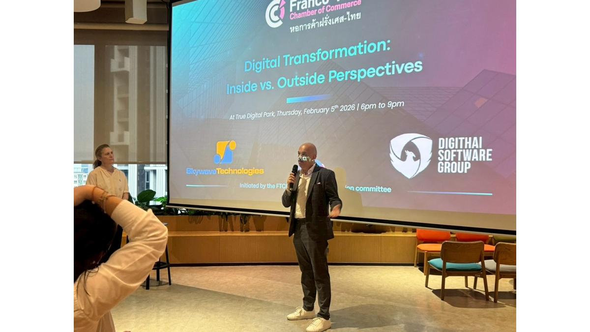 On 5 February 2026, the FTCC Digital Transformation Committee organized its first event and networking session at True Digital Park on the topic “𝗗𝗶𝗴𝗶𝘁𝗮𝗹 𝗧𝗿𝗮𝗻𝘀𝗳𝗼𝗿𝗺𝗮𝘁𝗶𝗼𝗻: 𝗜𝗻𝘀𝗶𝗱𝗲 𝘃𝘀. 𝗢𝘂𝘁𝘀𝗶𝗱𝗲 𝗣𝗲𝗿𝘀𝗽𝗲𝗰𝘁𝗶𝘃𝗲𝘀.”