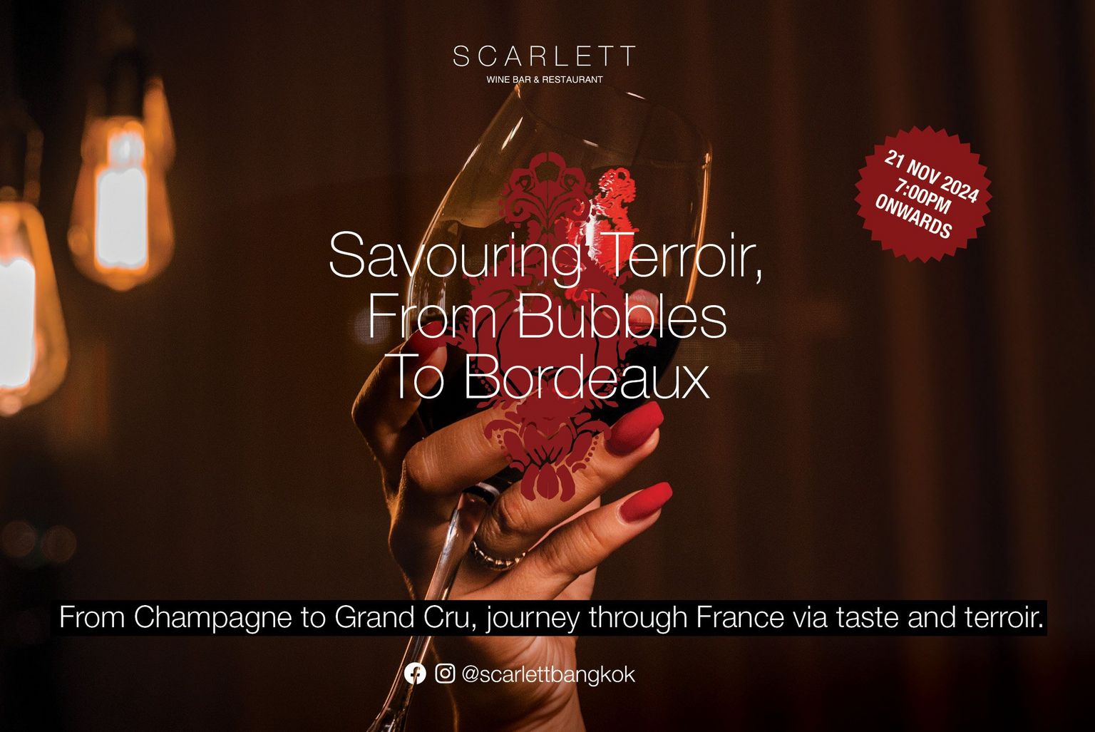 Guests will embark on a culinary journey through France’s most prestigious wine regions, complemented by gourmet dishes crafted by Scarlett’s expert culinary team. Set against the stunning backdrop of Bangkok’s skyline, the evening promises an unforgettable dining experience filled with elegance, flavor, and finesse.