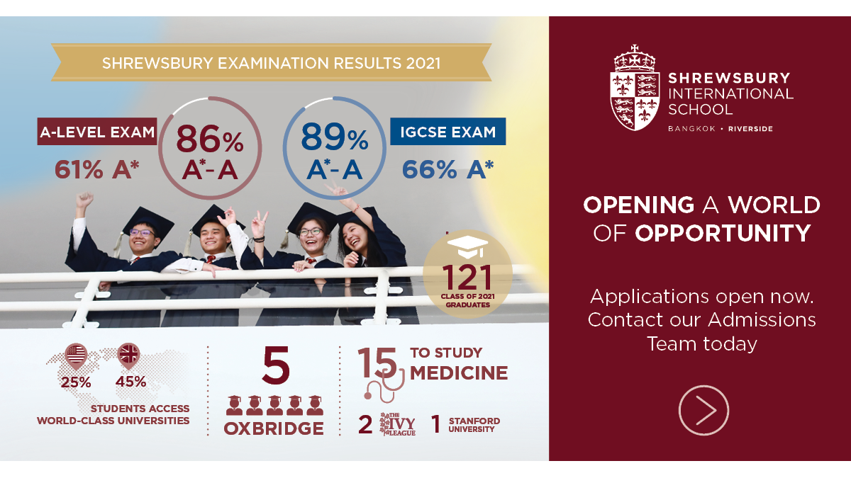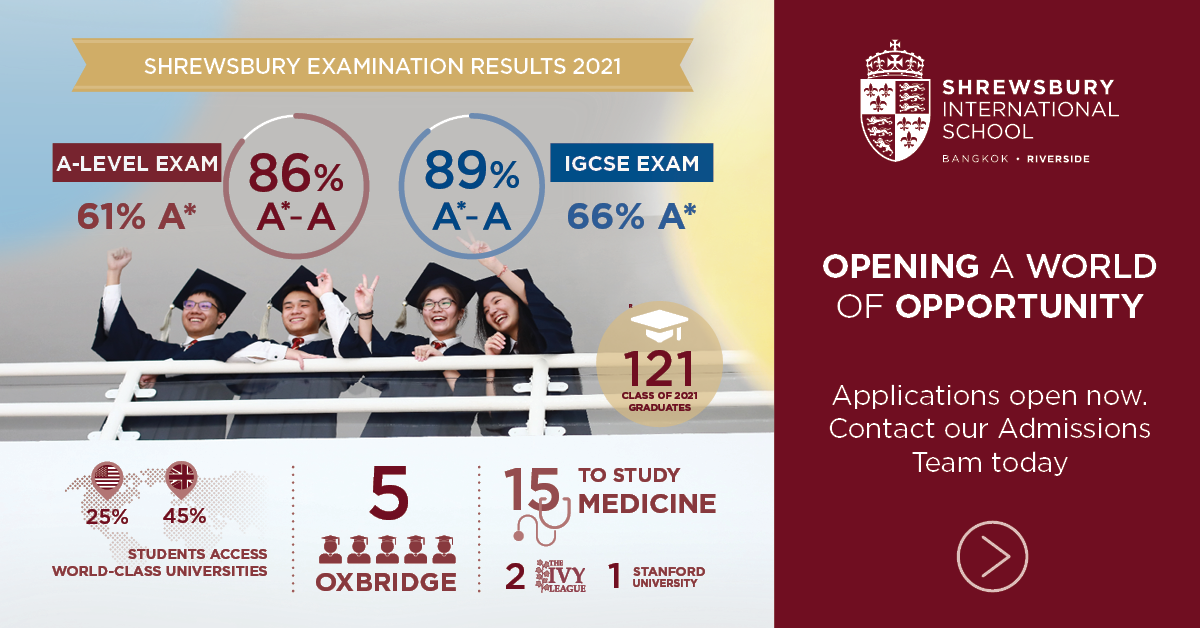 If you are interested in finding out more about Shrewsbury International School Bangkok, Riverside and their continued exam success leading to the world’s best universities, read more here.