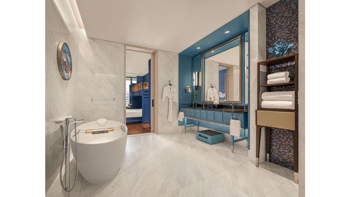 Just steps away, the Sealife Family Suites extend the sea-themed journey with a vibrant, whimsical design that caters to both play and rest. Located on the floor 10 alongside the Kids Club, each suite is hosted by Loma the Dolphin, Tuli the Turtle, or Silo the Seal, and brings the magic of the ocean indoors with imaginative décor and playful touches throughout. Young guests will delight in their own undersea-inspired play spaces, complete with bunk beds, a treasure chest of toys and games, and souvenir sea sacks filled with surprises like a Kids’ Club passport, colouring book, stickers, and more. Child-friendly amenities such as pint-sized slippers and dental care sets are thoughtfully placed in the dedicated children’s bathroom.