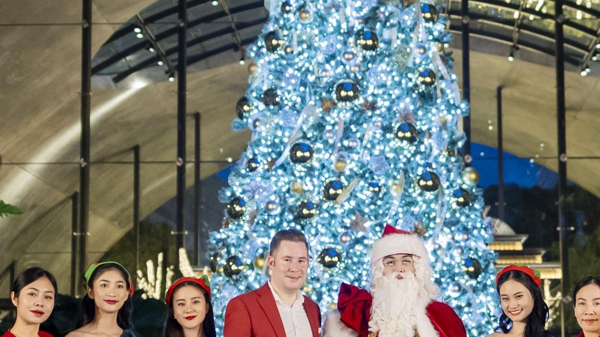 The official Christmas tree lighting ritual, conducted by the hotel manager’s Thaddaeus Weiss (standing in the middle). The tree is prominently displayed in the Chevaa Garden, the hotel’s spacious and green tropical garden.