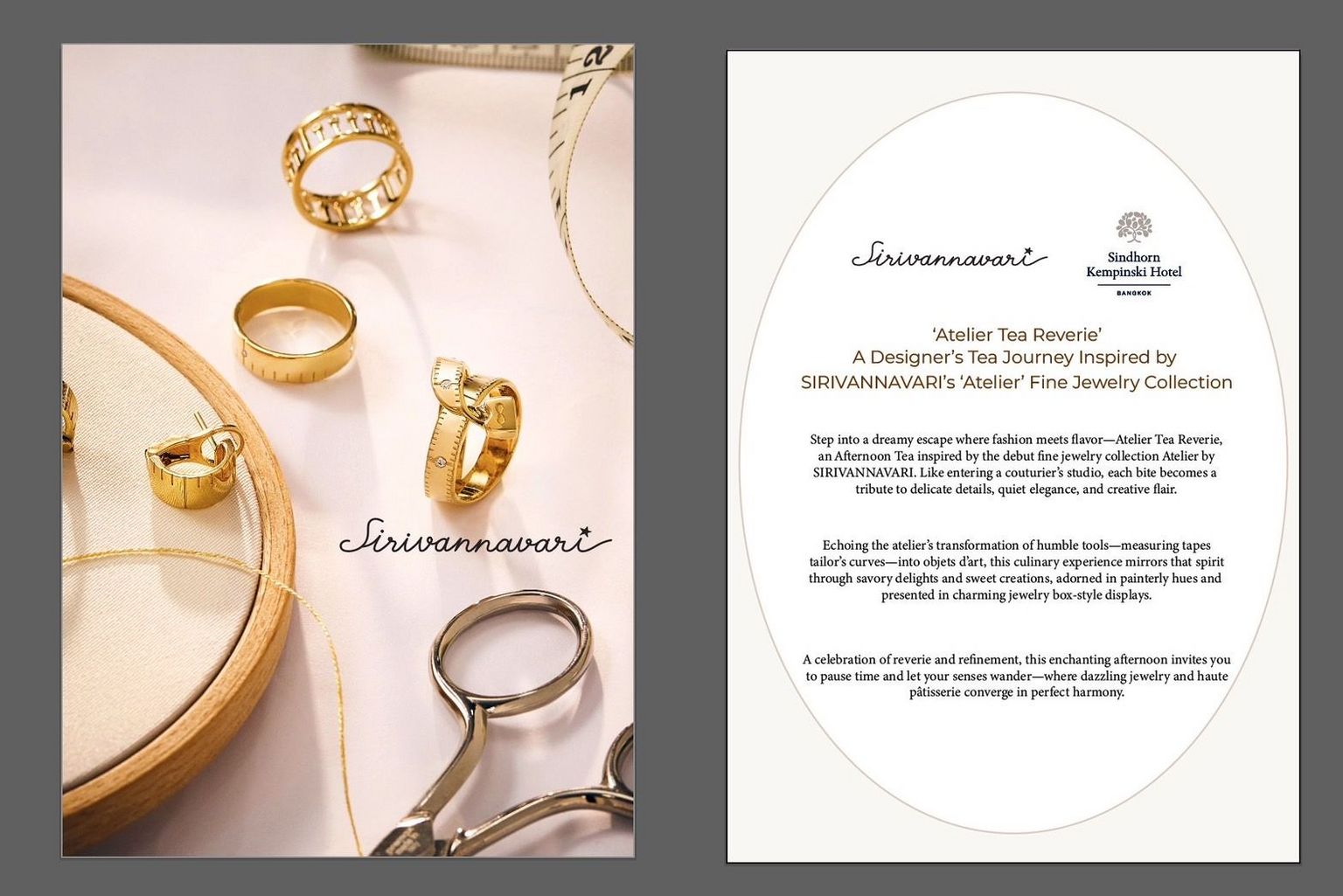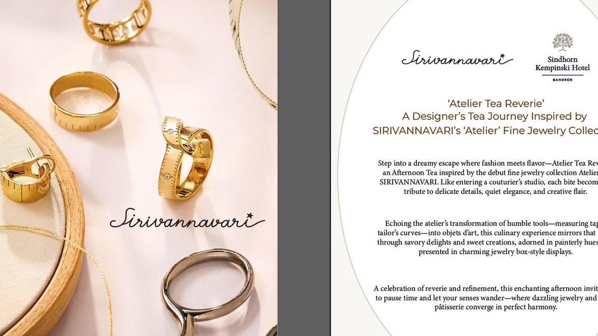 Bangkok, 18 July 2025 – SIRIVANNAVARI and Sindhorn Kempinski Hotel Bangkok cordially invite you to experience the exquisite ‘Atelier Tea Reverie’ – a brand-new luxury afternoon tea experience inspired by the SIRIVANNAVARI ‘Atelier’ Fine Jewellery Collection.