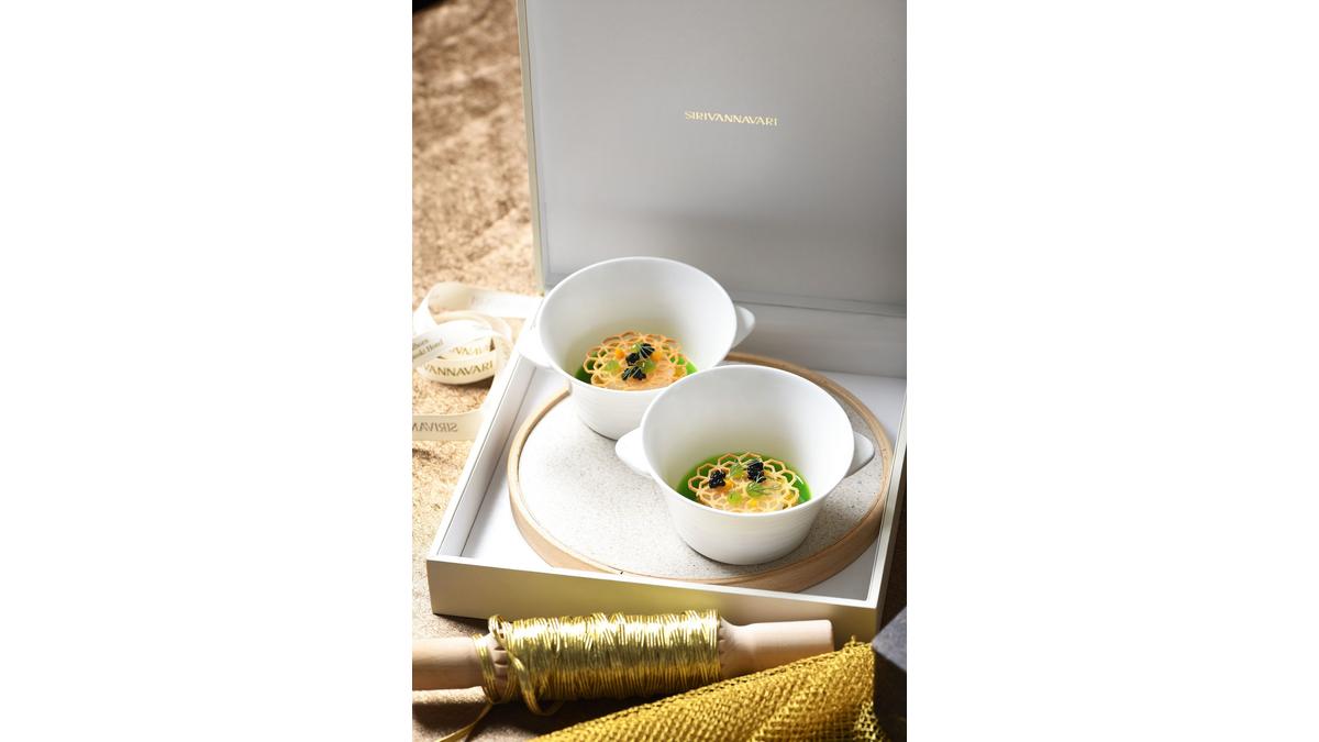 The delicate flavours of the tea and handcrafted sweets and savouries reflect the precision and artistry found in the designer’s studio. Everyday tools such as measuring tapes are reimagined as exquisite fine jewellery pieces, while the desserts, which burst with vibrant colours and artistic flair, are presented beautifully in jewellery-inspired boxes.