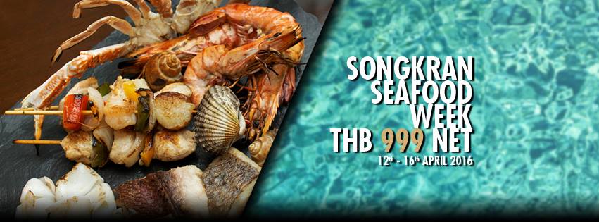 “Songkran Seafood Week” is priced at THB 999 net per person. You can choose to add THB 100 net per person to enjoy unlimited soft drinks or add THB 400++ per person to enjoy unlimited sparkling wine, house wine, local beer, fruit juice and soft drinks. Children under 10 years old eat for free. Available on Tuesday 12th to Saturday 16th April 2016 only! From 18:00 – 22:30 hrs.