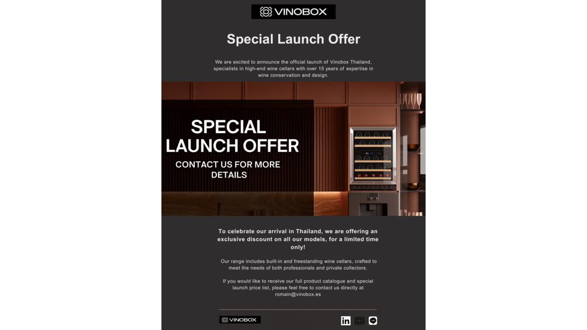 Membres Special Launch Offer for high-end wine cellars by VINOBOX Le 15/08/2025 Documentation Télécharger Launch_Offer_-_Vinobox.pdf (PDF • 3 Mo)