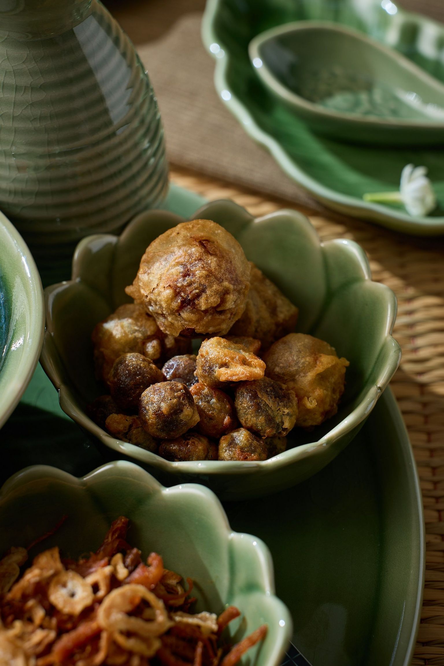 - Stuffed Shallots: deep-fried shallot stuffed with caramelised fish