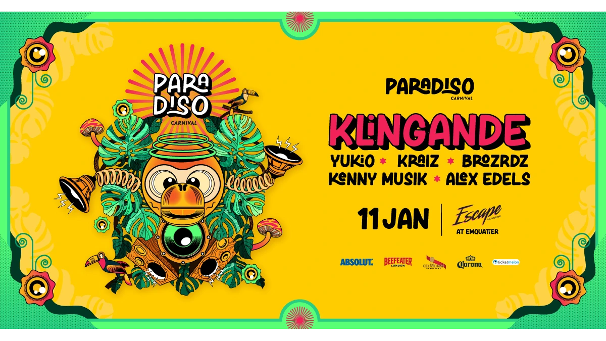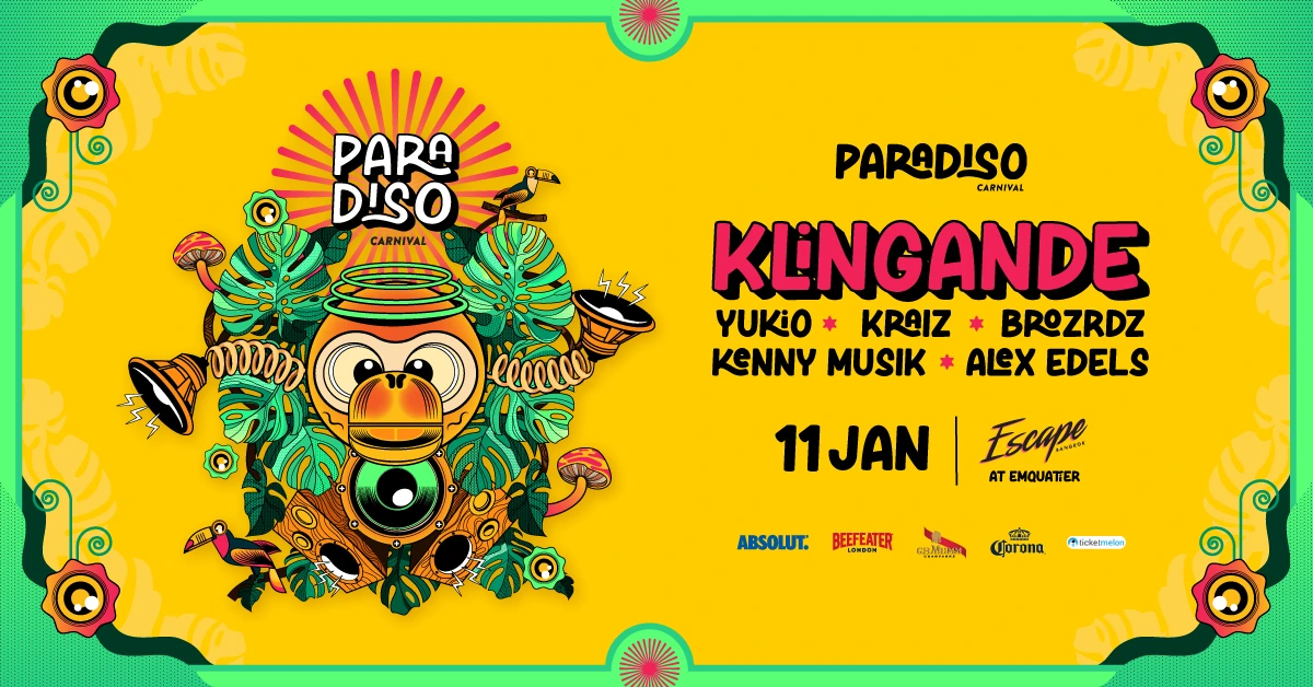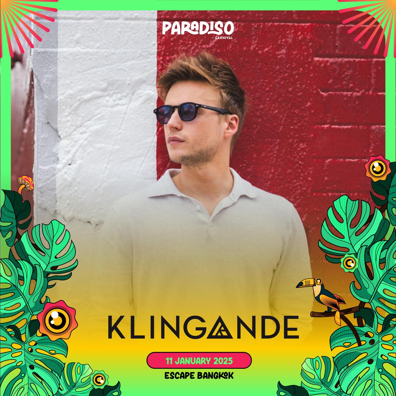The jungle arrives in Bangkok for its first edition! Get ready for the event of the year! Paradiso Carnival is where electrifying music meets carnival magic in a vibrant, jungle-themed wonderland with the epic return of KLINGANDE in Bangkok! With awesome international lineups: YUKIO, KRAIZ, BROZRDZ, KENNY MUSIK, ALEX EDELS