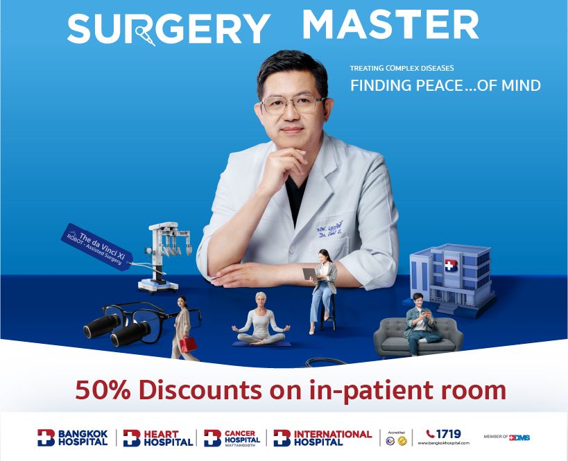 ? Feeling at ease for every surgery at Bangkok Hospital Headquarters. SURGERY MASTER – Treating complex diseases. Finding peace of mind.
