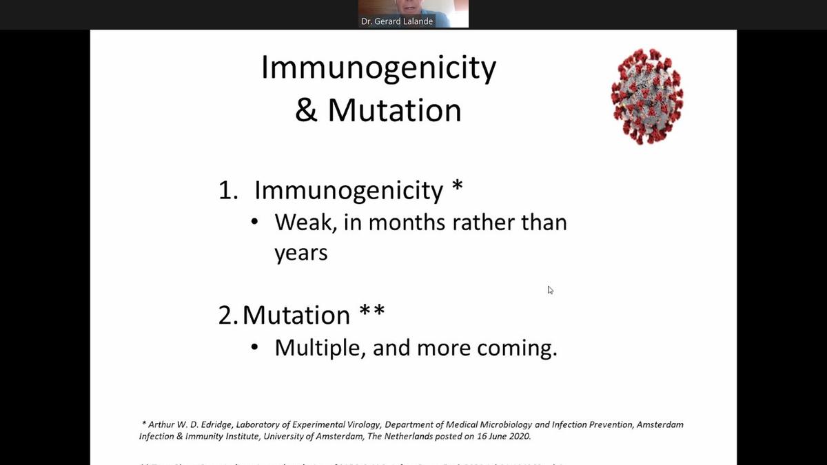 Thank you Dr. Gerard Lalande to share his insights on the "Update on COVID-19 & Vaccines"