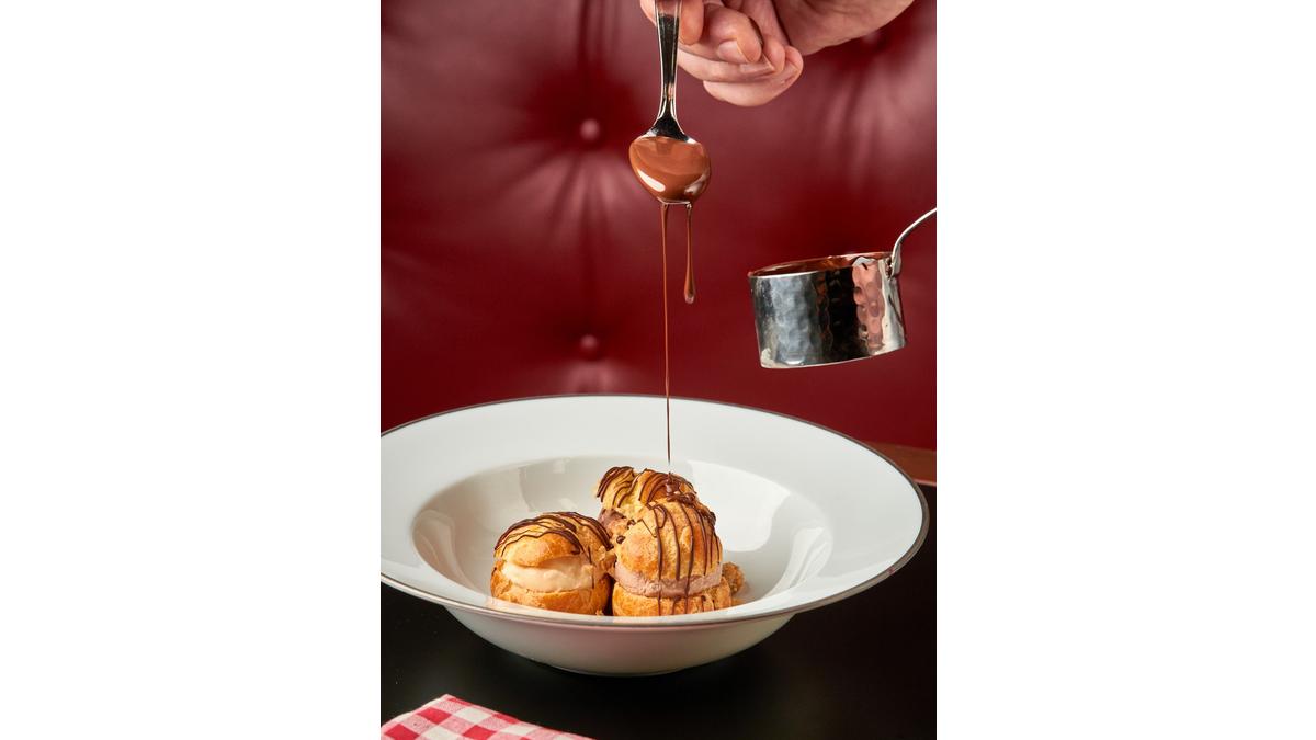 In French style, the bistro’s food is paired with a balanced list of wine and drinks. That’s just the start of the evening. A decadent choice of French-influenced desserts like Baba Gascon with Armagnac, Bourdaloue pear