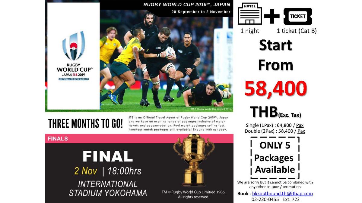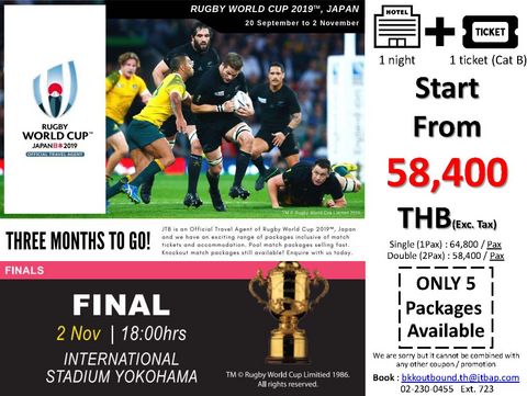 The Rugby World Cup 2019 with JTB Thailand: 1Night+1Ticket start from 58,400THB!