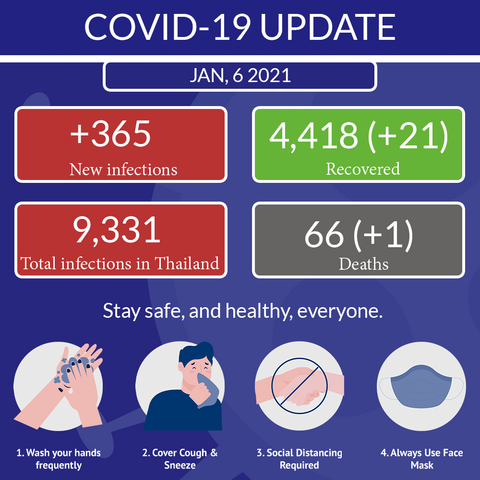 Covid-19 situation on January 6, 2021 time 12:00, Thailand