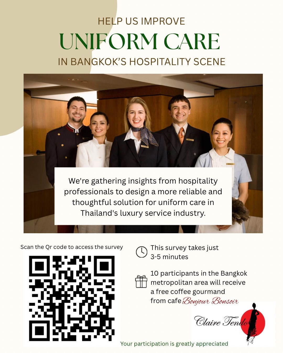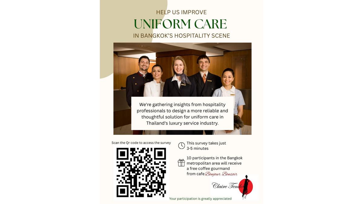 Your voice matters, and your answers will directly shape a more reliable and thoughtful solution for uniform care in Thailand’s luxury hospitality industry.