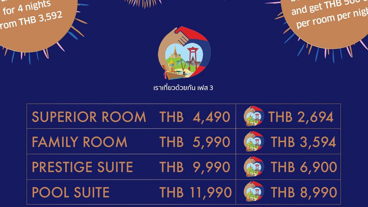 Prestige suite | 9,990 Baht | 6,900 Baht |