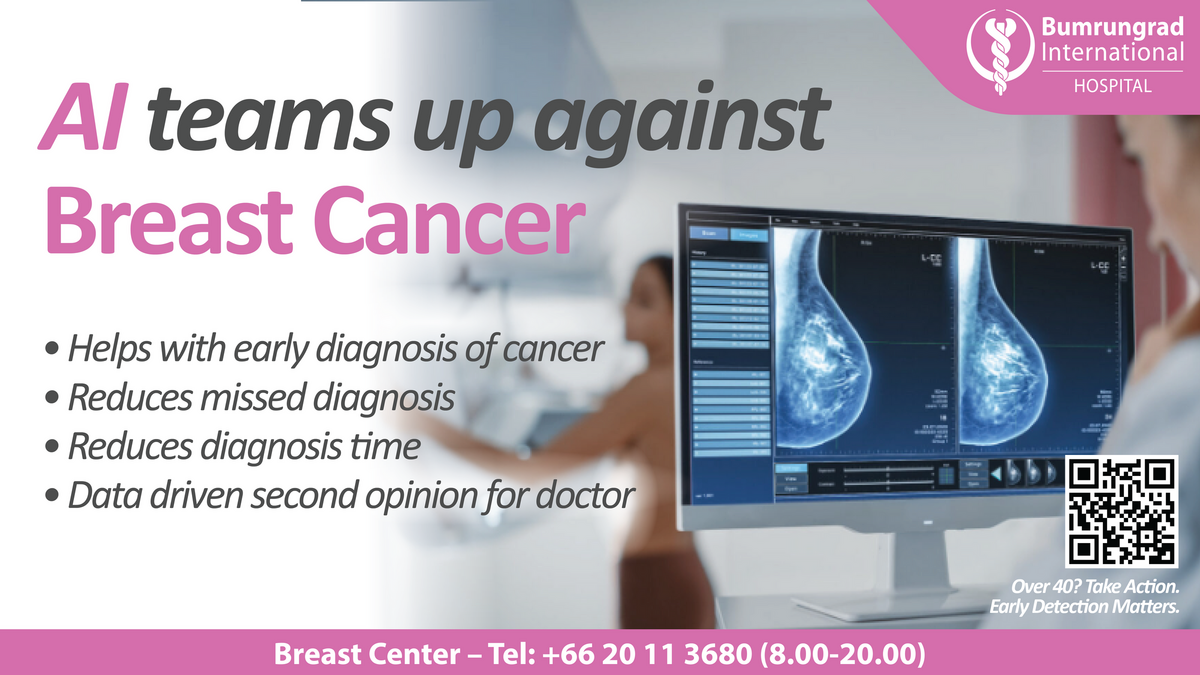 Early detection is therefore a priority. This is why Bumrungrad was the first private hospital in Thailand to introduce AI technology Lunit Insight, to assist radiologists in detecting early stages of breast cancer, through mammogram images analyses.