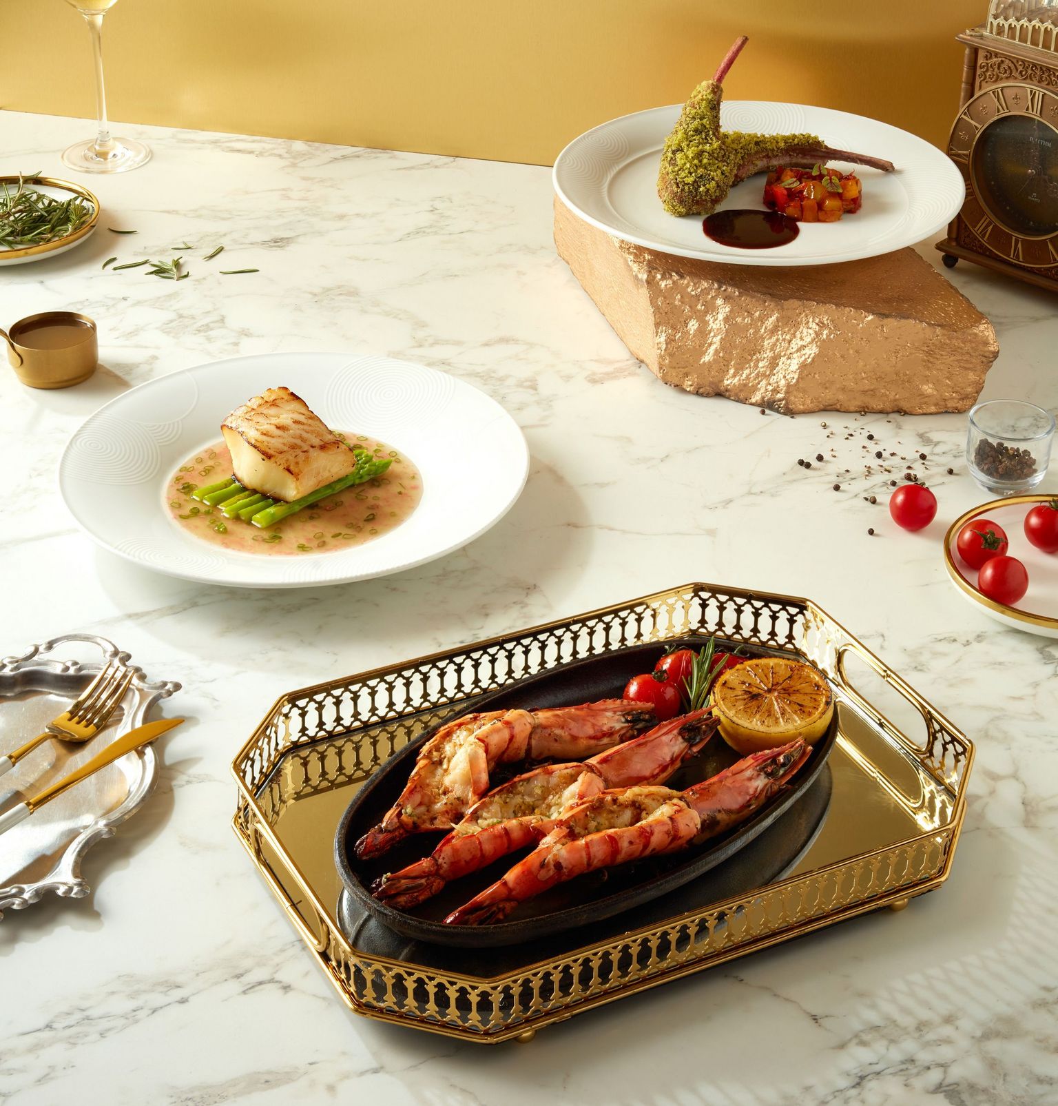 From Herb-Crusted New Zealand Lamb to Grilled Tiger Prawns and Miso-Glazed Black Cod, the Land & Sea selection celebrates premium sourcing and balanced flavours. Desserts such as the Dark & White Chocolate Mille-Feuille and Signature Nam Dok Mai Sticky Rice Ball provide a memorable finale.