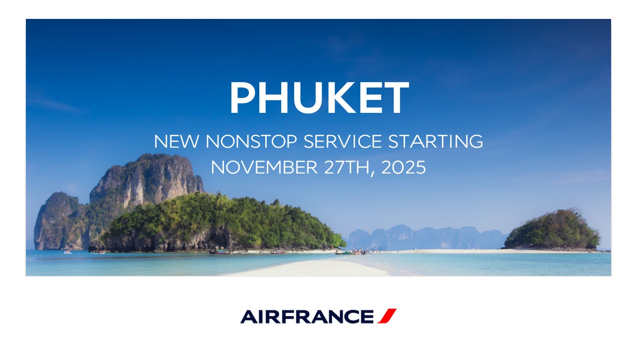 Starting November 27, 2025, Air France will offer a new nonstop service between Paris-Charles de Gaulle and Phuket, in southern Thailand. Three flights per week will operate on Mondays, Wednesdays, and Saturdays on departure from Paris, with return flights from Phuket on Tuesdays, Thursdays, and Sundays.