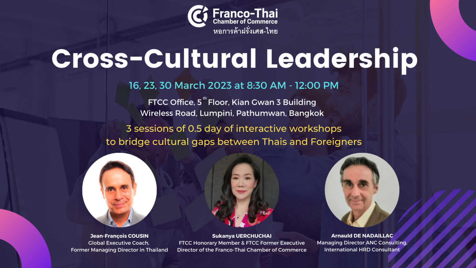 The workshop will be held in a highly-dynamic group-coaching approach by two French and one Thai expert trainers with more than 15 years working in Thailand and ASEAN.