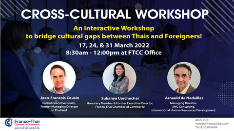 The workshop will be held in a highly-dynamic group-coaching approach by two French and one Thai expert trainers with more than 15 years working in Thailand and ASEAN.