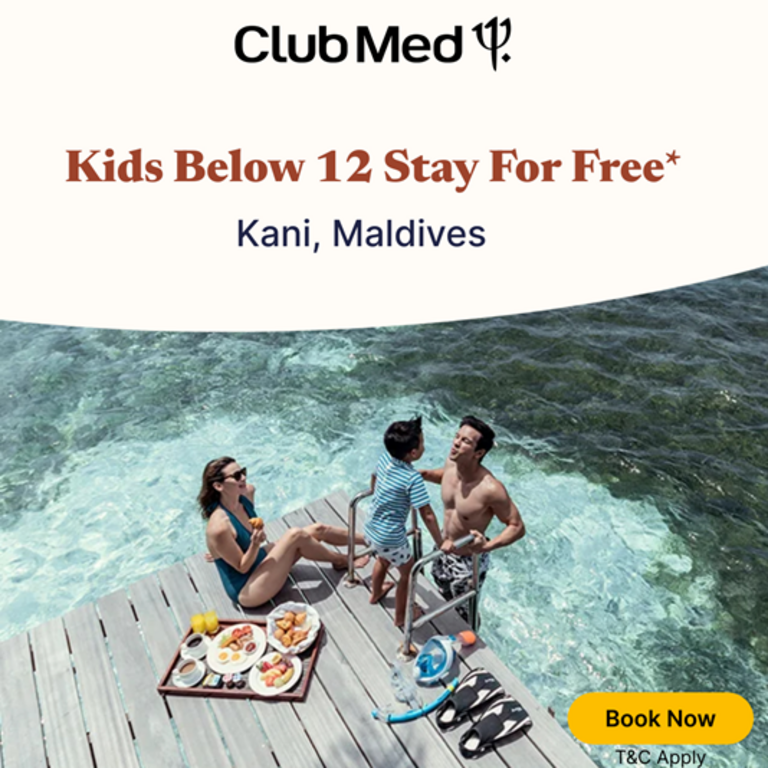 Exclusive offer Kids under 12 years stay free and 12 – 17 years old stay half price Only for Club Med Kani with minimum stay for 4D3N…