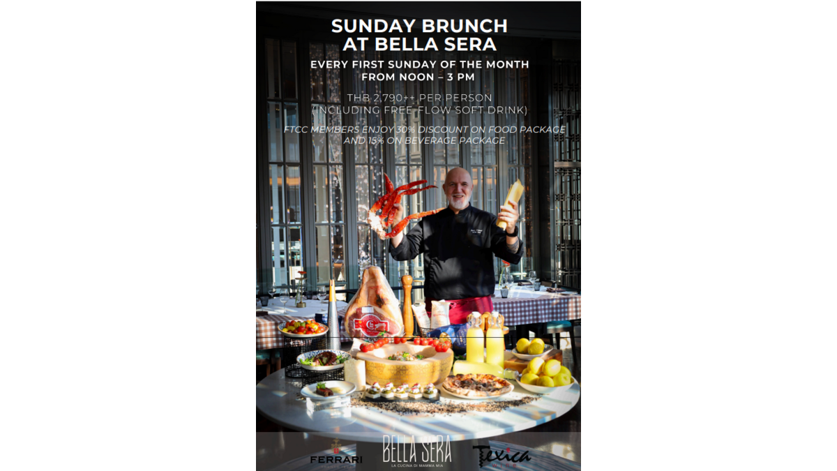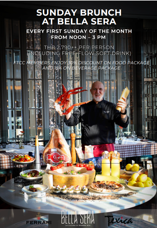 We are excited to offer an exclusive dining benefit to FTCC members for our Bella Sera Italian-style Sunday Brunch this coming Sunday (2nd of March). In keeping with our commitment to delivering exceptional dining experiences, we are pleased to extend the following offers to your members: