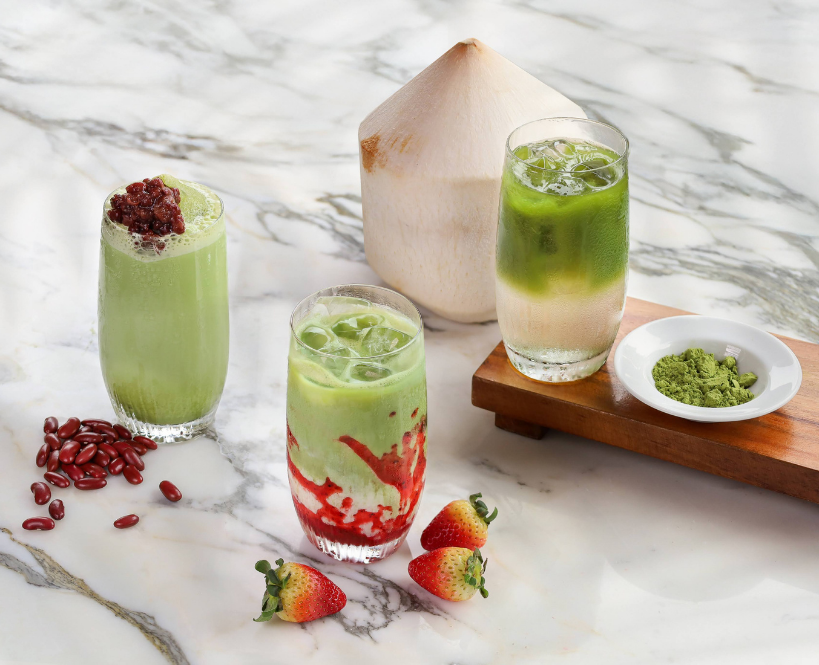 Savor Kyoto’s finest with our Uji Matcha creations. Known for its vibrant color and refined flavor, this premium green tea shines in blends with coconut water, strawberry purée, and the classic pairing of red beans. A truly authentic matcha experience in every sip.