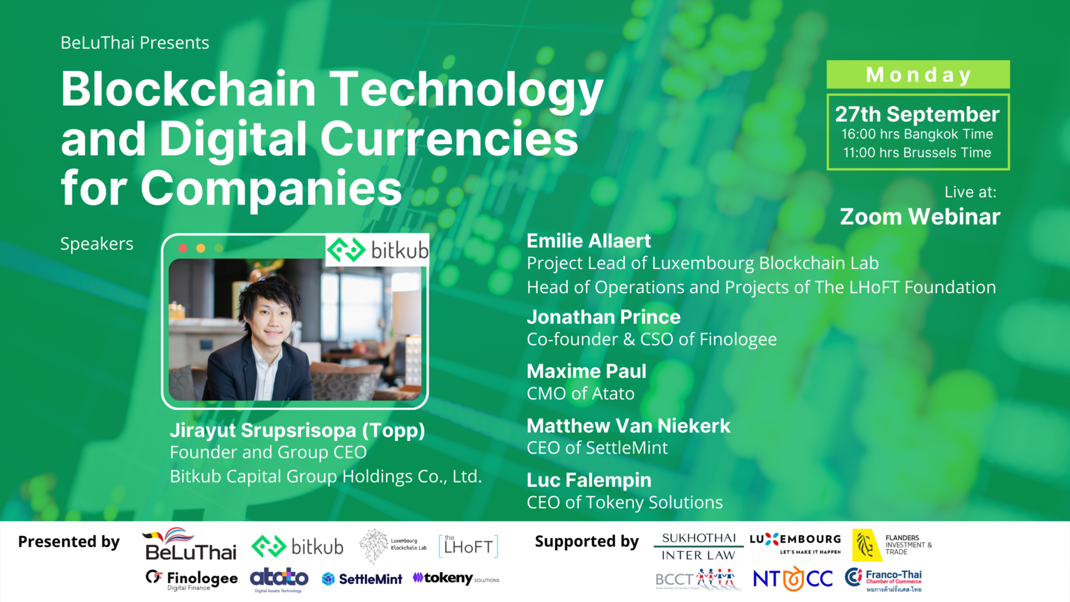 This time we are hosting the webinar together with Bitkub, the largest registered crypto-exchange in Thailand. "Khun Topp" the founder and CEO of Bitkub will be one of our illustrious speakers including;