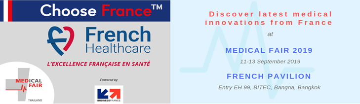 11 French companies manufacturing medical devices and products proudly present their latest innovations and technologies at MEDICAL FAIR 2019 from September 11-13, 2019 at BITEC Bang Na, Bangkok.