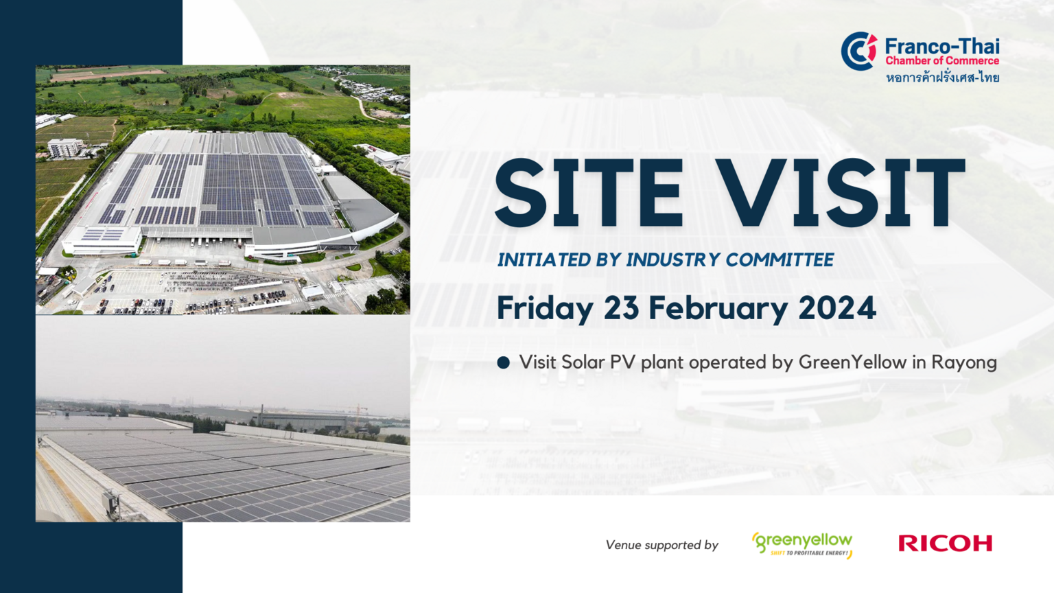 Franco-Thai Chamber of Commerce (FTCC) is delighted to extend an invitation to you for a half-day site visit in Rayong, organized by our Industry Committee. This exclusive event offers you a unique opportunity to explore the operations of solar PV plant, managed by GreenYellow.