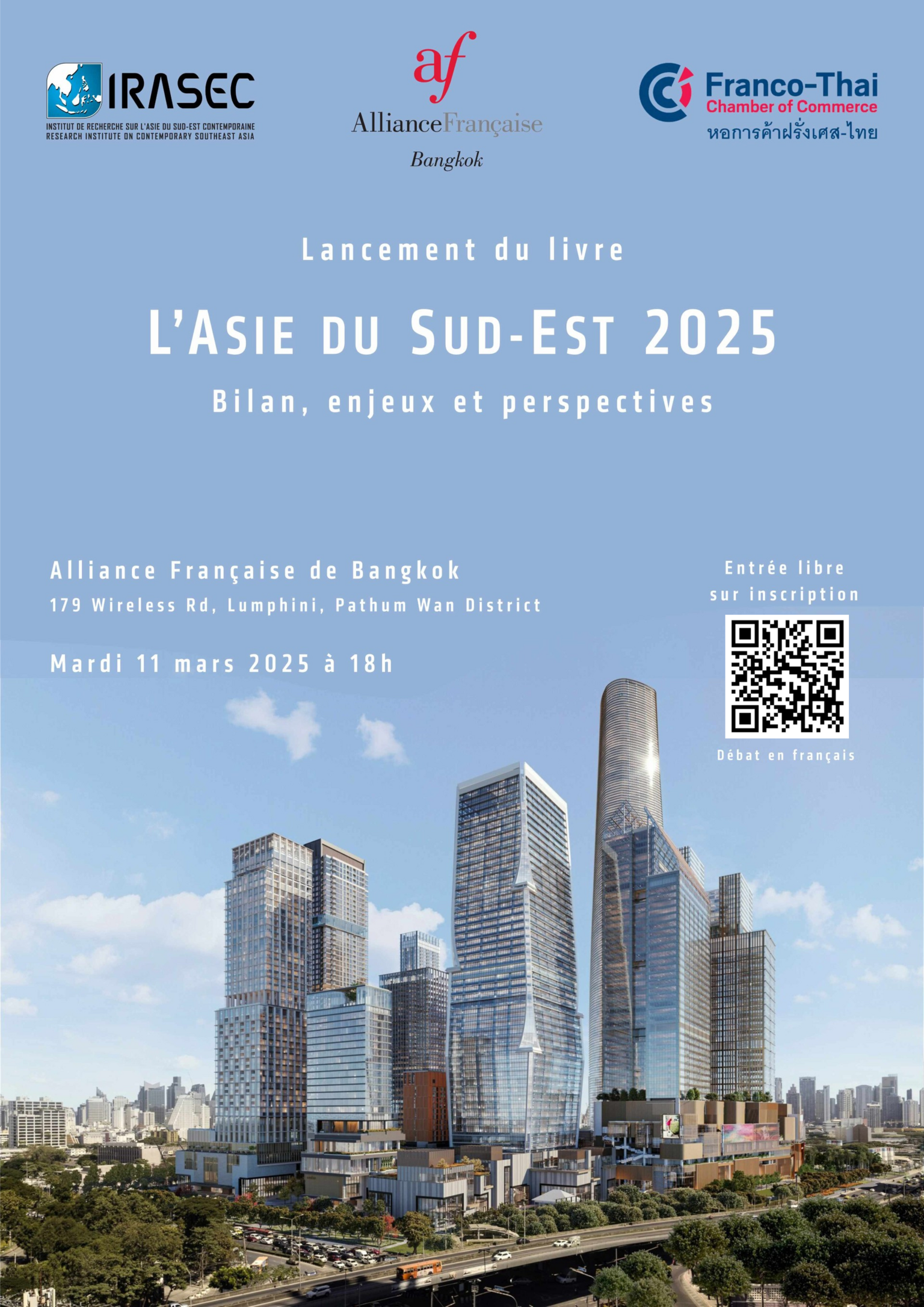 La Chambre de Commerce Franco-Thai (FTCC) est ravie de vous inviter a la conference de lancement du livre "L'Asie du Sud-Est 2025" en collaboration avec l'IRASEC et l'Alliance Francaise.