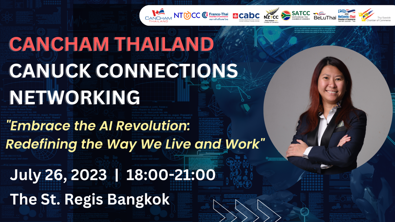 CanCham Thailand, in collaboration with the Foreign Chamber of Commerce, is organising an enlightening evening of knowledge-sharing and networking at the St. Regis Bangkok on July 26th, from 18:00 to 21:00. This exclusive event brings together industry leaders and experts from the AI sector to explore the fascinating world of artificial intelligence (AI) and its impact on our lives and work.