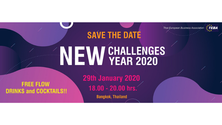 TEBA is pleased to invite you to New Challenges New Year 2020, which will be held on Wednesday 29th January 2020 from 18.00 – 20.00 hrs. at 23rd floor, Rembrandt Hotel & Suites Bangkok