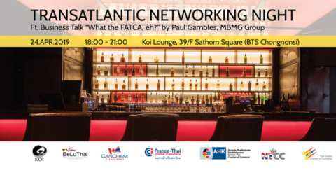 CanCham Thailand in collaboration with Belgium-Luxembourg, French, German, the Netherlands and Swedish Chambers of Commerce would like to invite you an interactive business talk, “What the FATCA, eh?”, and networking event. The event is scheduled on Wednesday, April 24, 2019, from 18:00 – 21:00.