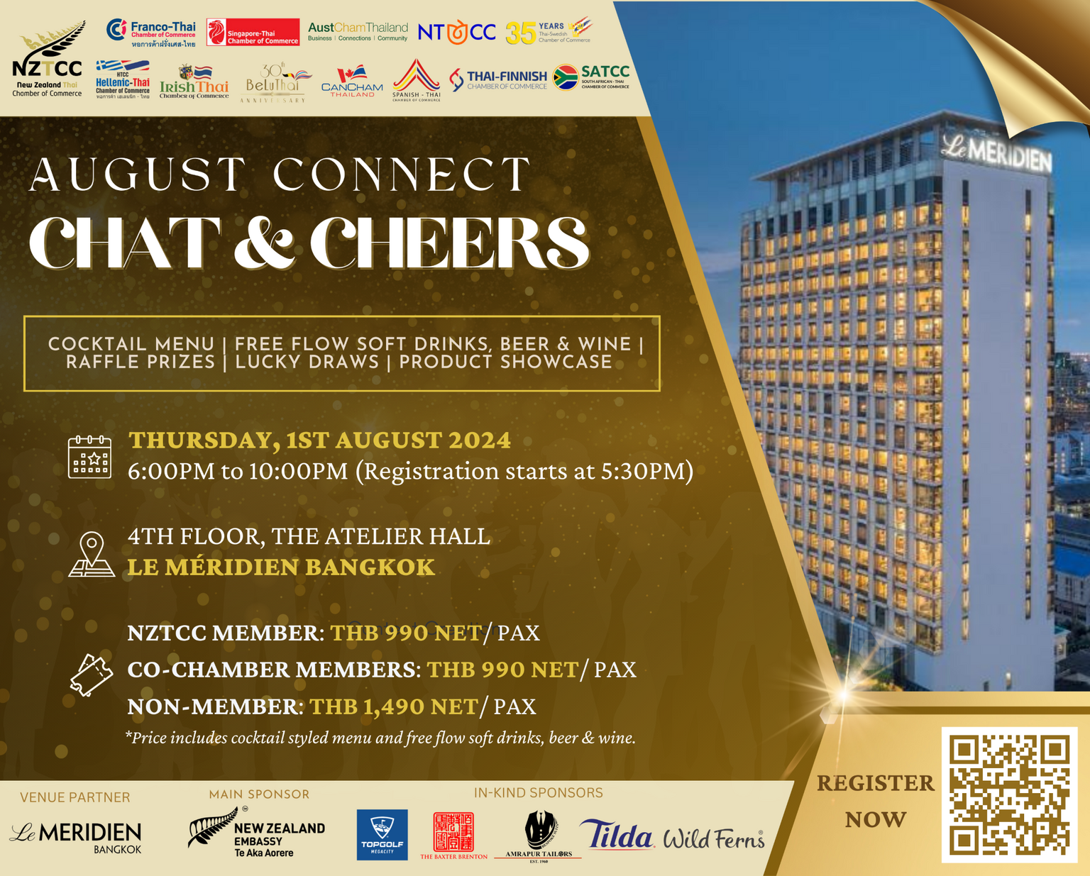 Are you looking to expand your professional network and forge valuable connections? Look no further—August Connect, Chat & Cheers Night is back in town on Thursday, 1st August 2024, at Le Meridien Bangkok!
