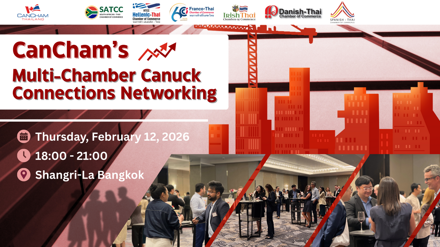 Join us for CanCham’s FIRST Multi-Chamber Canuck Connections Networking event of 2026! Taking place on Wednesday, 12 February 2026, from 18:00 to 21:00, this evening brings together professionals for meaningful connections in a relaxed and social setting.