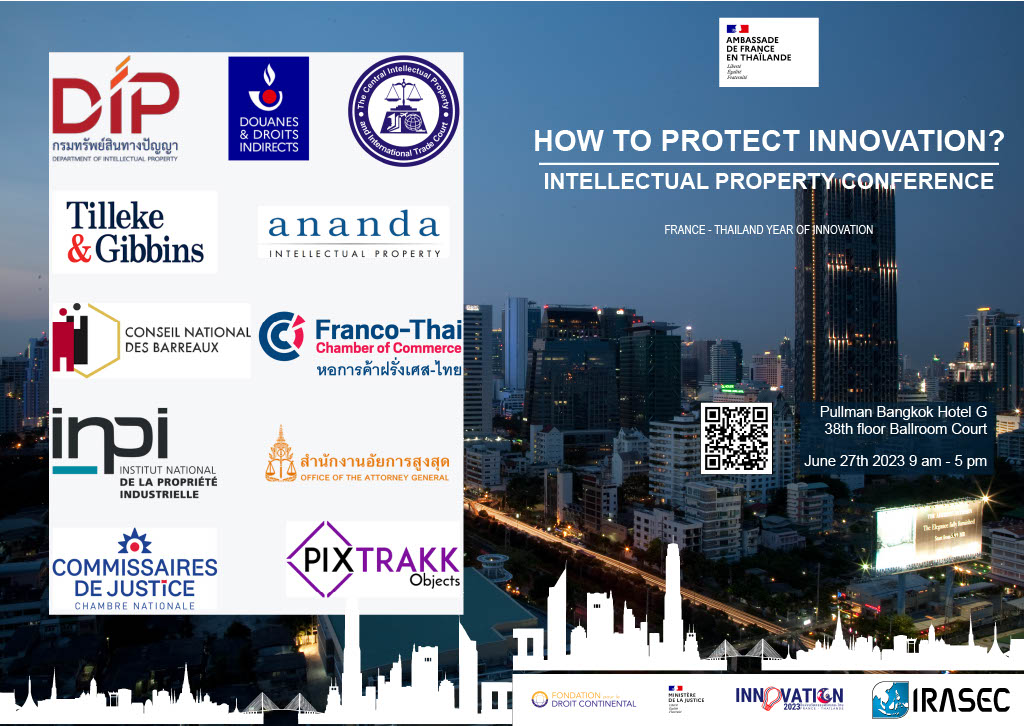 The Embassy of France is pleased to invite you on June 27, 2023 to its seminar « How to protect innovation » as part of the 2023 Thailand – France Year of Innovation.